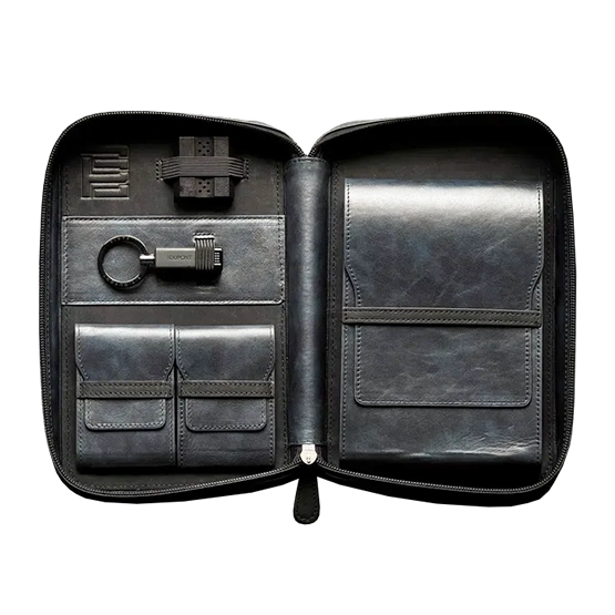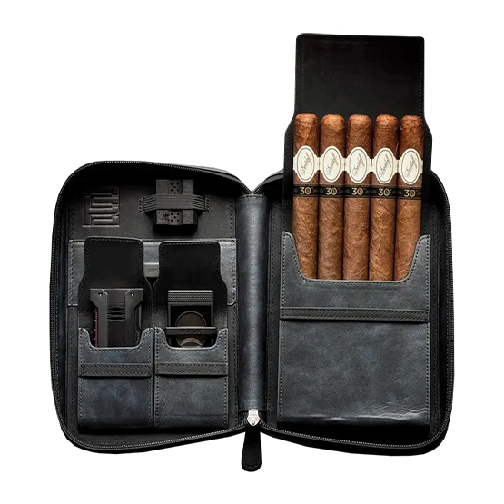 Introducing the limited edition “Night Crawler” Cigar Travel Case, where no two are alike thanks to the unique leather patina. Crafted from top-grain leather, it combines durability and elegance with semi-hard protective inserts. Features include a collapsible cigar pocket, dual accessory slots, tool slings, a Boveda humidity sleeve, and a rubber-sealed zipper for long-lasting freshness — blending form, function, and modern design. (Accessories and cigars not included.)